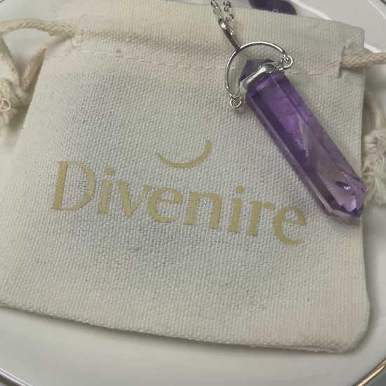- Colgante: Amatista en punta de entre 3–4 cm, montado en plata de ley 925.